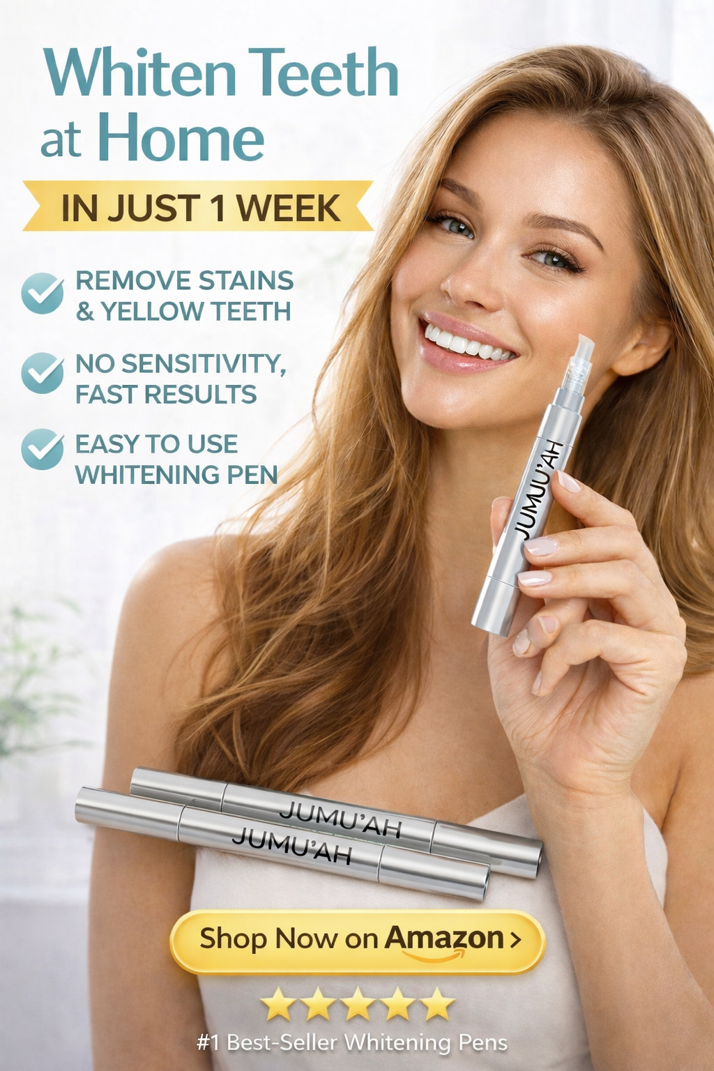 Experience enamel-safe whitening that fits your lifestyle—gentle, non-toxic, and designed to avoid sensitivity. Add the Jumu'ah Whitening Pen to your oral care routine for reliable, professional-feeling results.